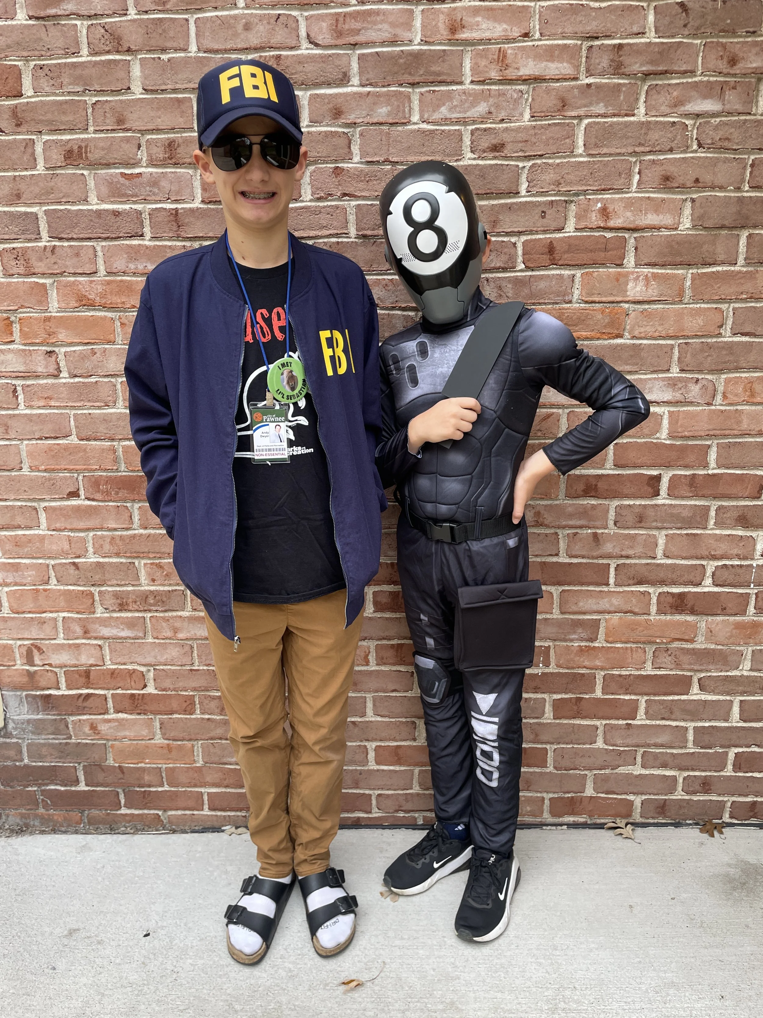 /Another Halloween in the books! This year we had Burt Macklin from the TV show Parks and Recreation (Chase) and 8-Ball from the Fortnite video game (Robbe). Both boys went with friends this time around so Chris and I had our first Halloween *off* in 13 years and we weren’t sad about it one bit. We all had a fun evening and then came back together to celebrate the candy haul–the most impressive yet.